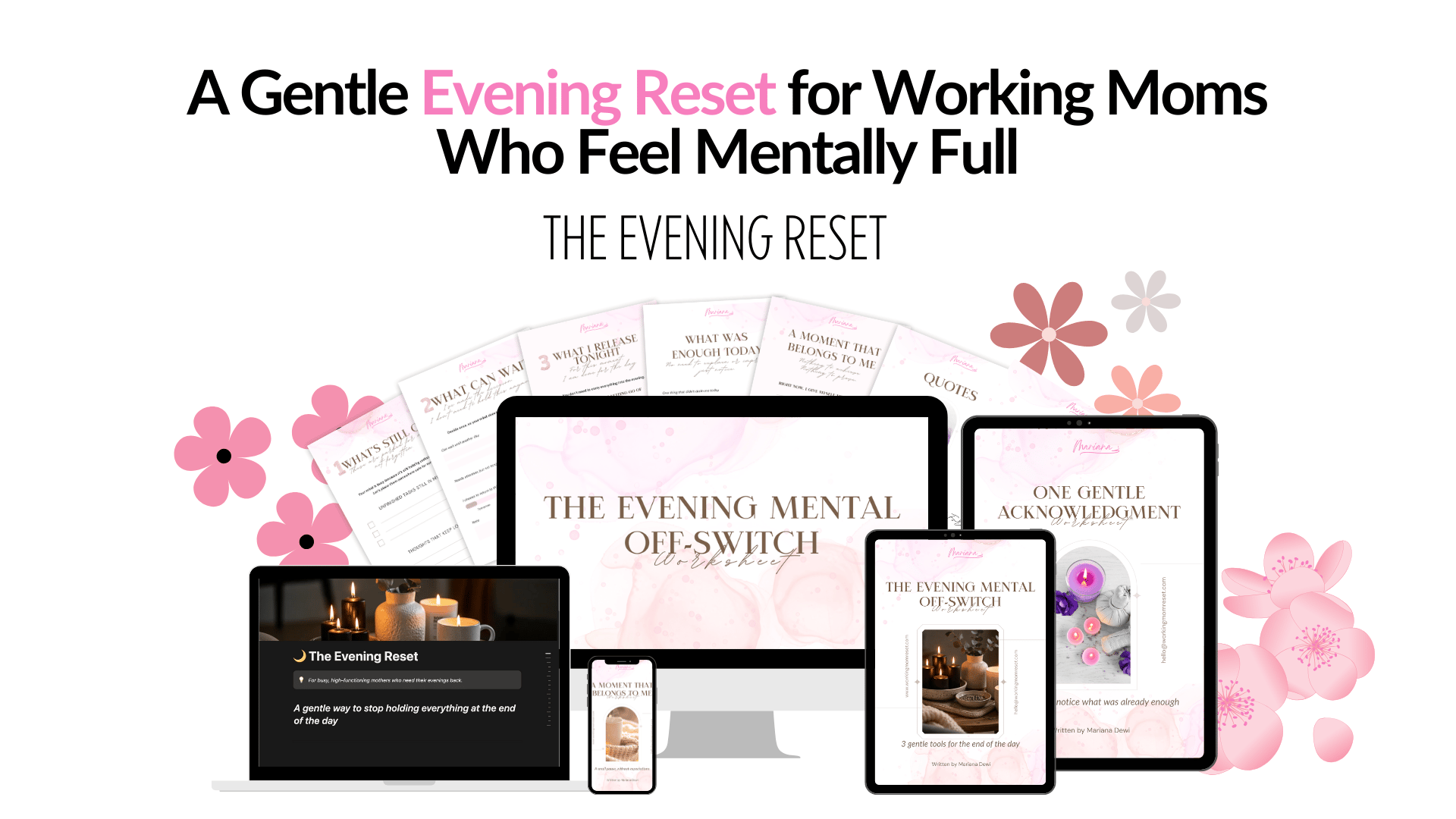 A gentle worksheet bundle designed to help working moms release mental load after busy days.